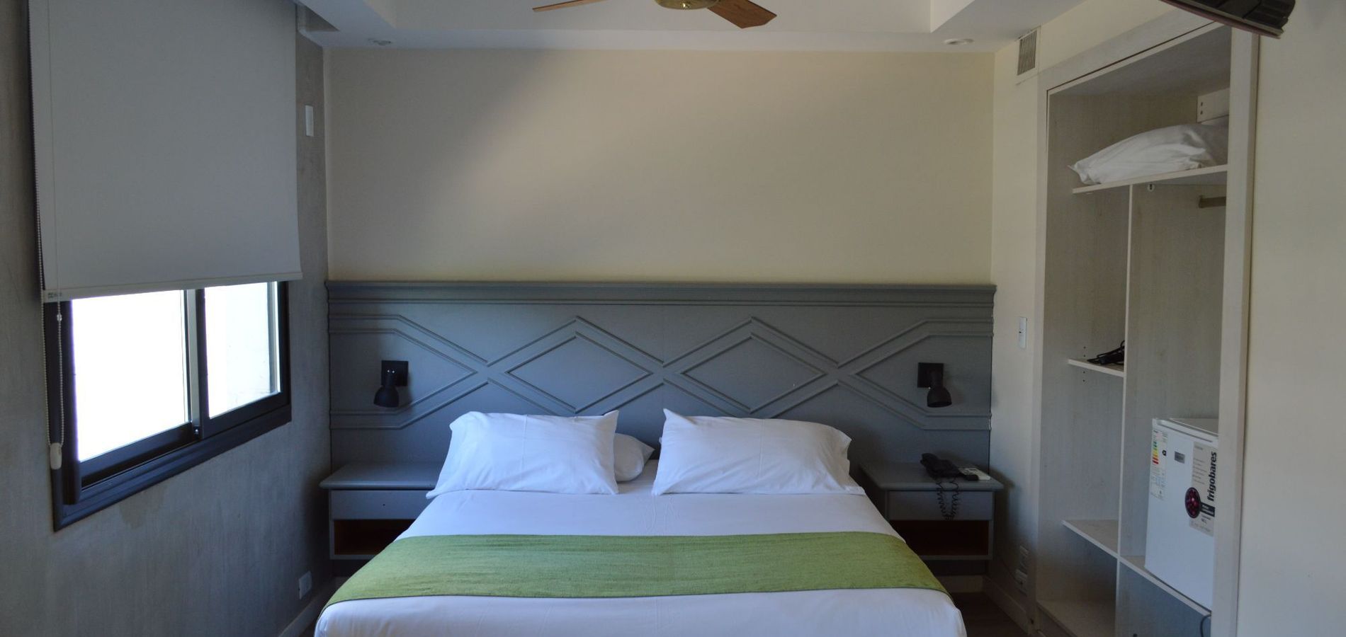 El Hotel trabaja con una filosofía de material anti-alérgico, por este motivo solo usamos cortinas roller blackout, pisos flotante y plumón con cubre plumón de percal de 180 hilo. Equipamiento de la habitación: Canales por cable, Caja fuerte, Aire acondicionado, Calefacción, receptáculo de ducha, Secador de pelo, Minibar, Servicio de despertador.